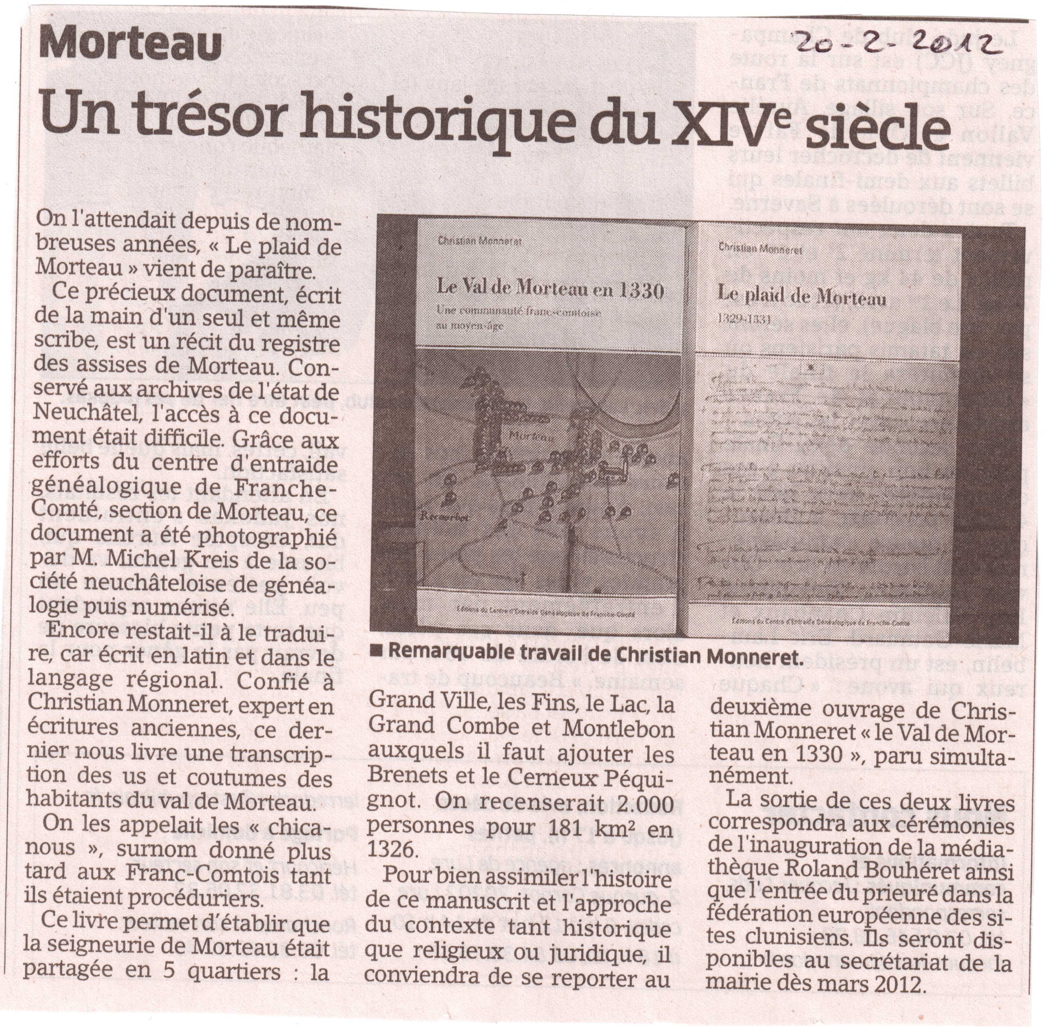 MORTEAU : Un trésor historique du XIVe siècle |