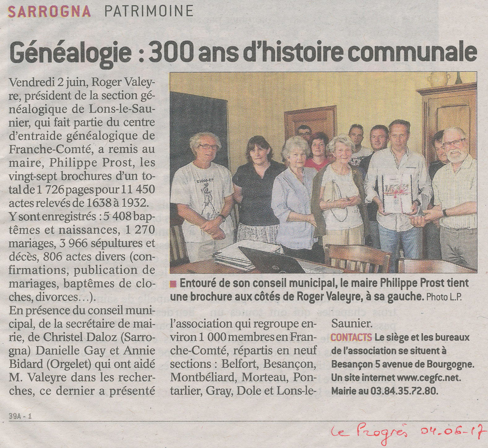 SARROGNA : Généalogie : 300 ans d'histoire communale |